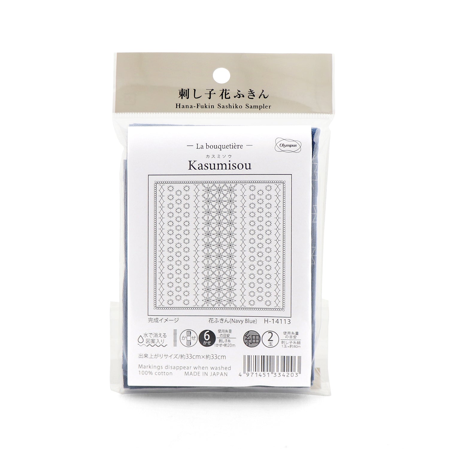 Olympus Sashiko Fabric Pack, Flower Dishcloth, La Bouquetiere Kasumisou (Navy Blue) H-14113