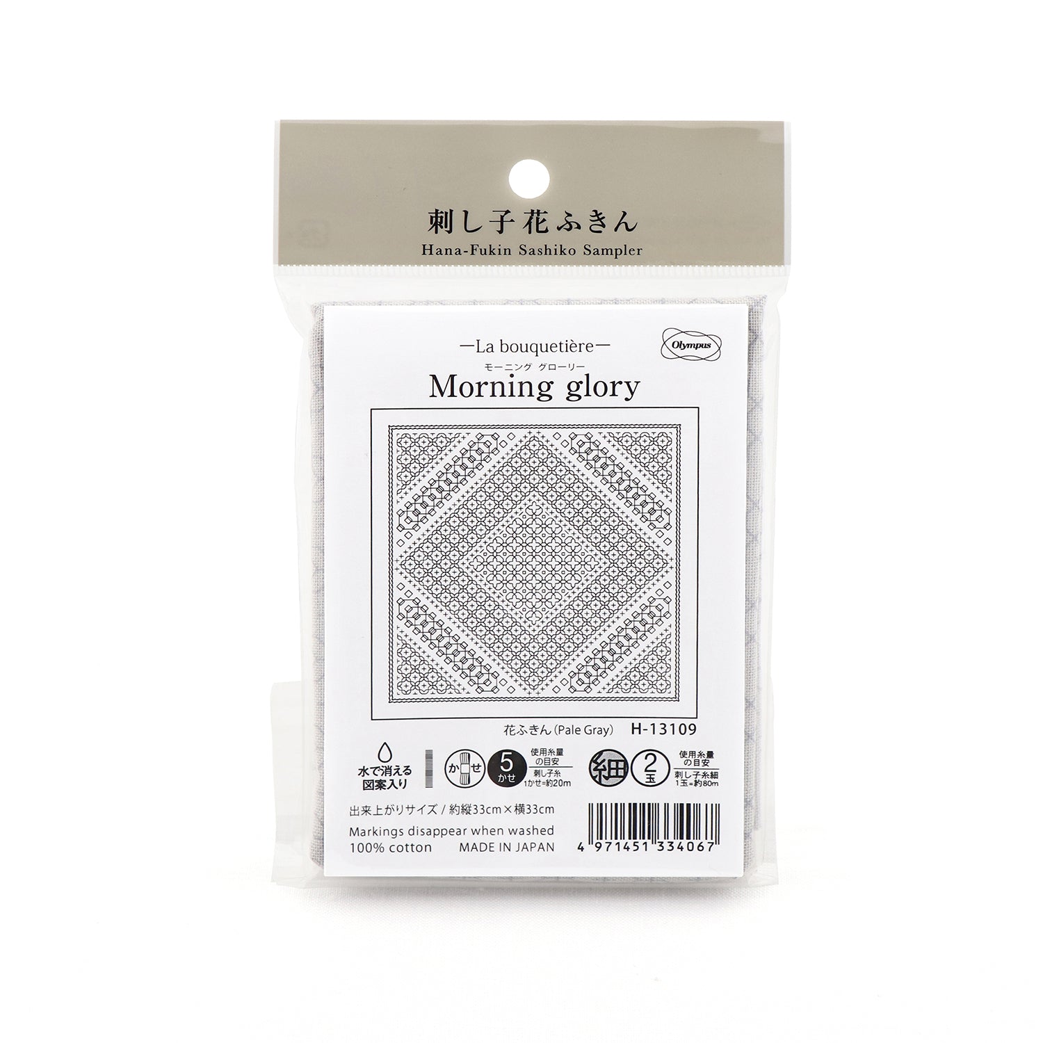 Olympus Sashiko Fabric Pack, Flower Dishcloth, La Bouquetiere, Morning Glory (Pale Gray), H-13109
