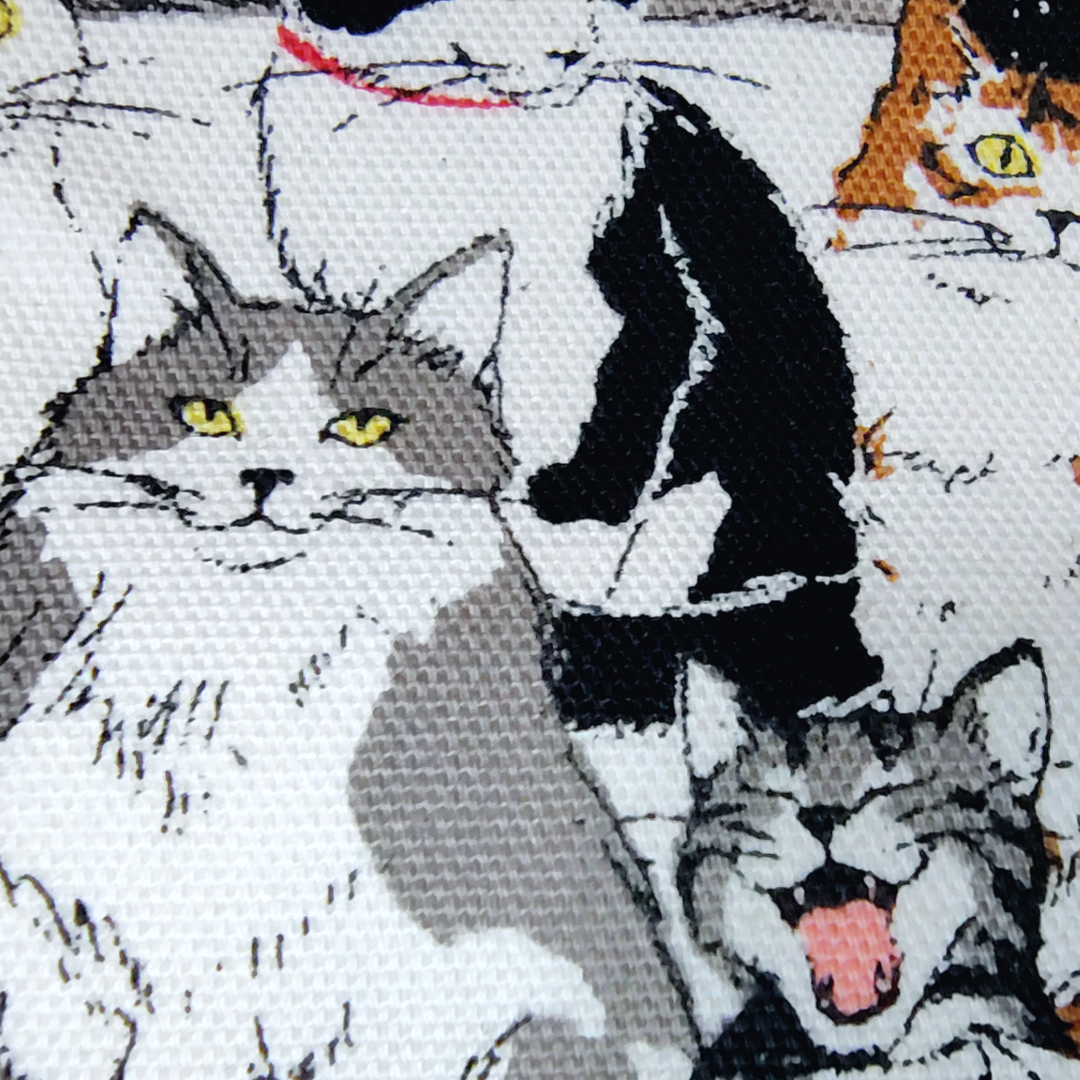 表情豊かな猫たちがぎっしり並んだ、人気の猫柄オックス生地!