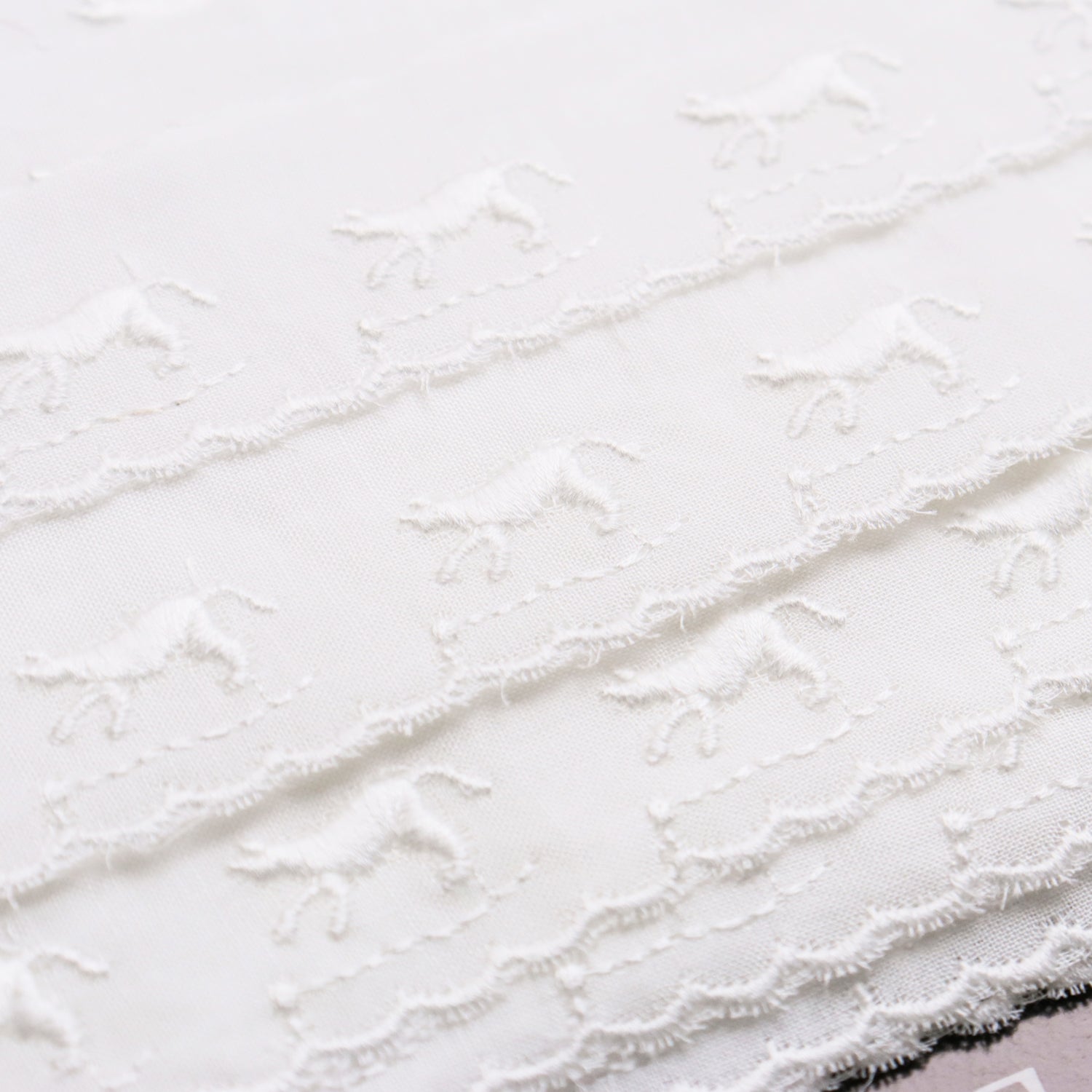 愛らしい猫の刺繍が作品を彩る、綿100%の上質レース