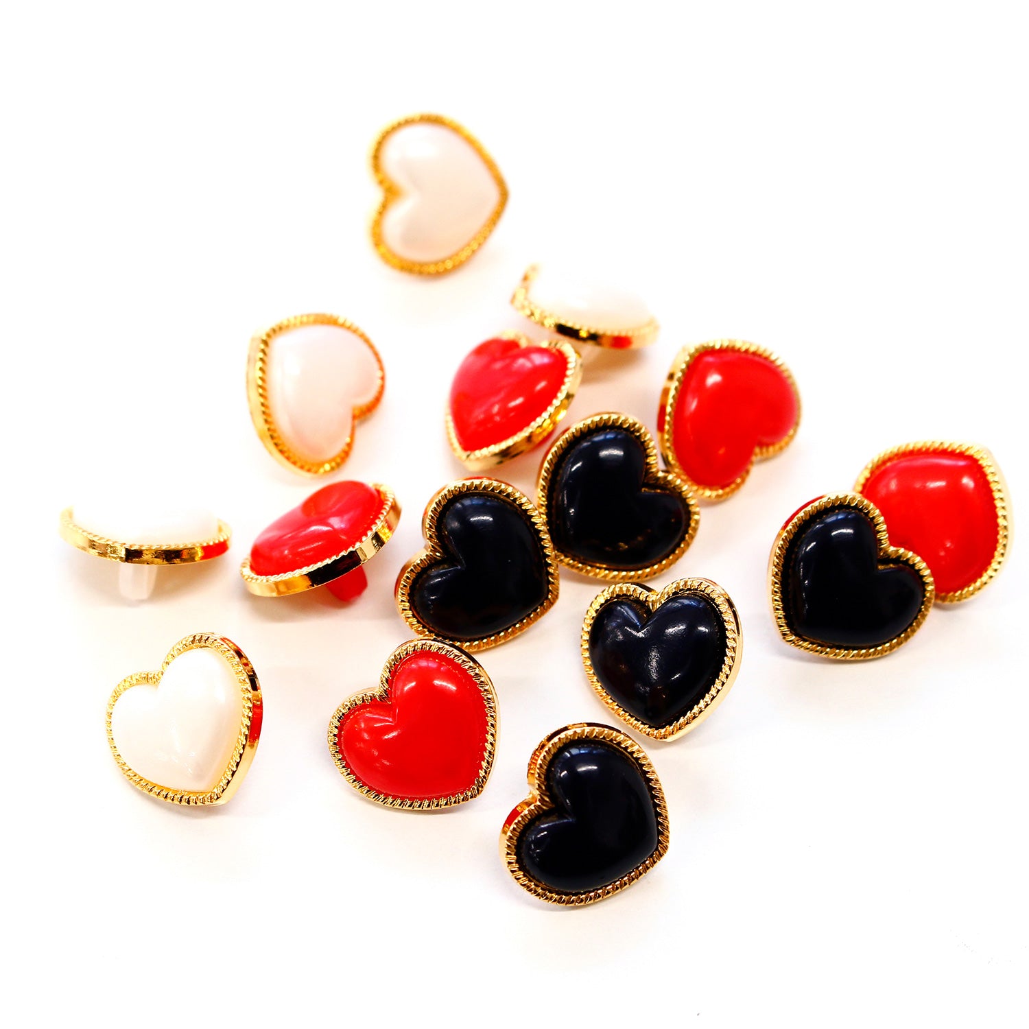 ハート型ボタン 11.5mm 5個入 (赤・黒・白)2511-11