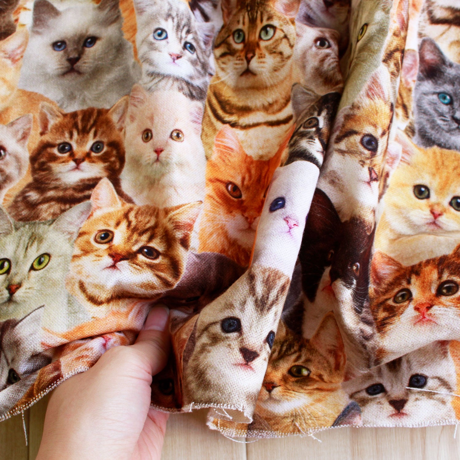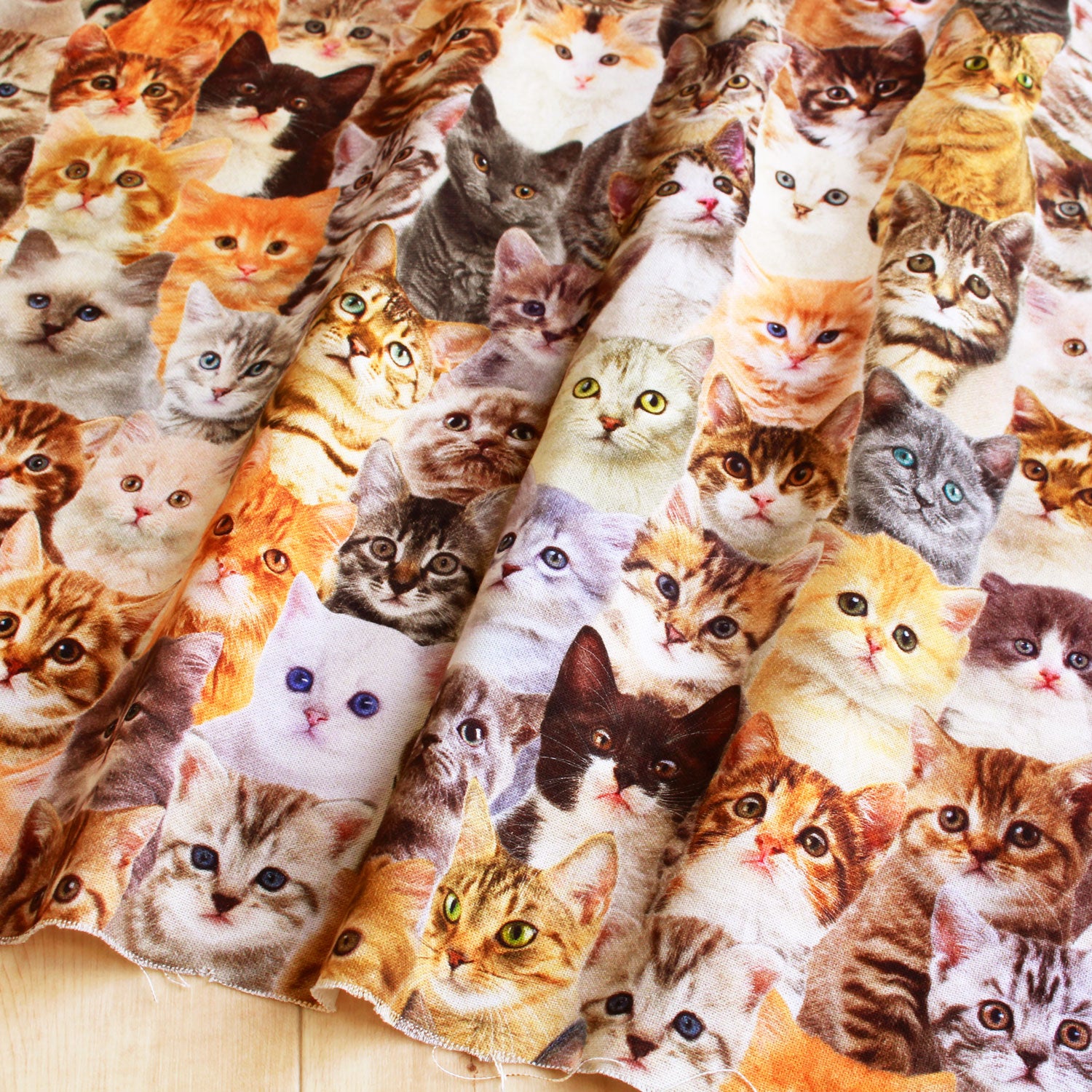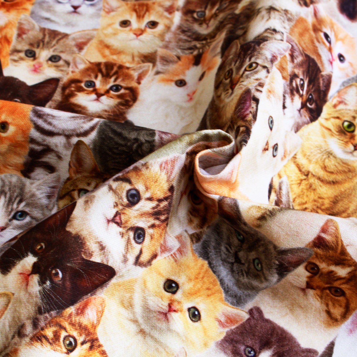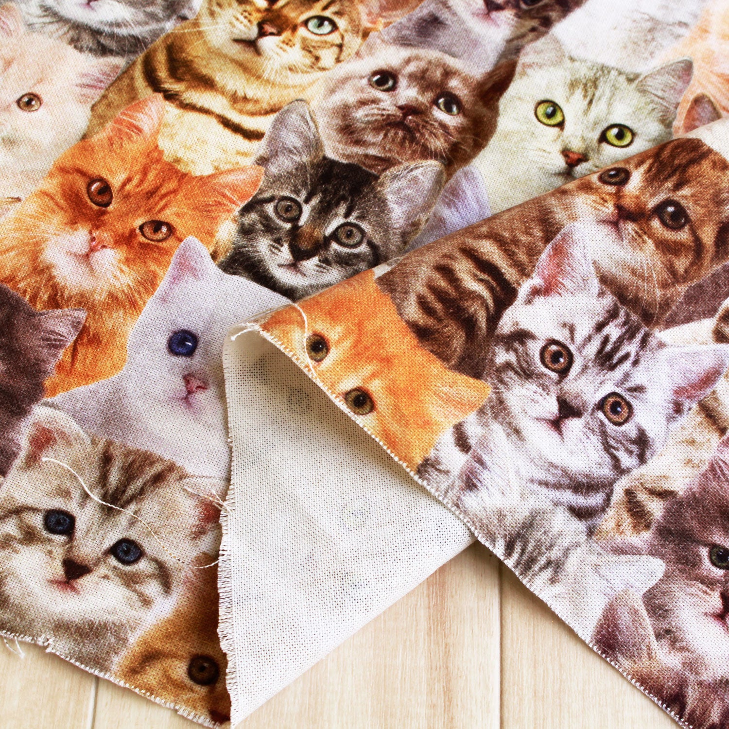 リアルで可愛い猫たちが並んだ、高精細プリントが魅力のオックス生地。