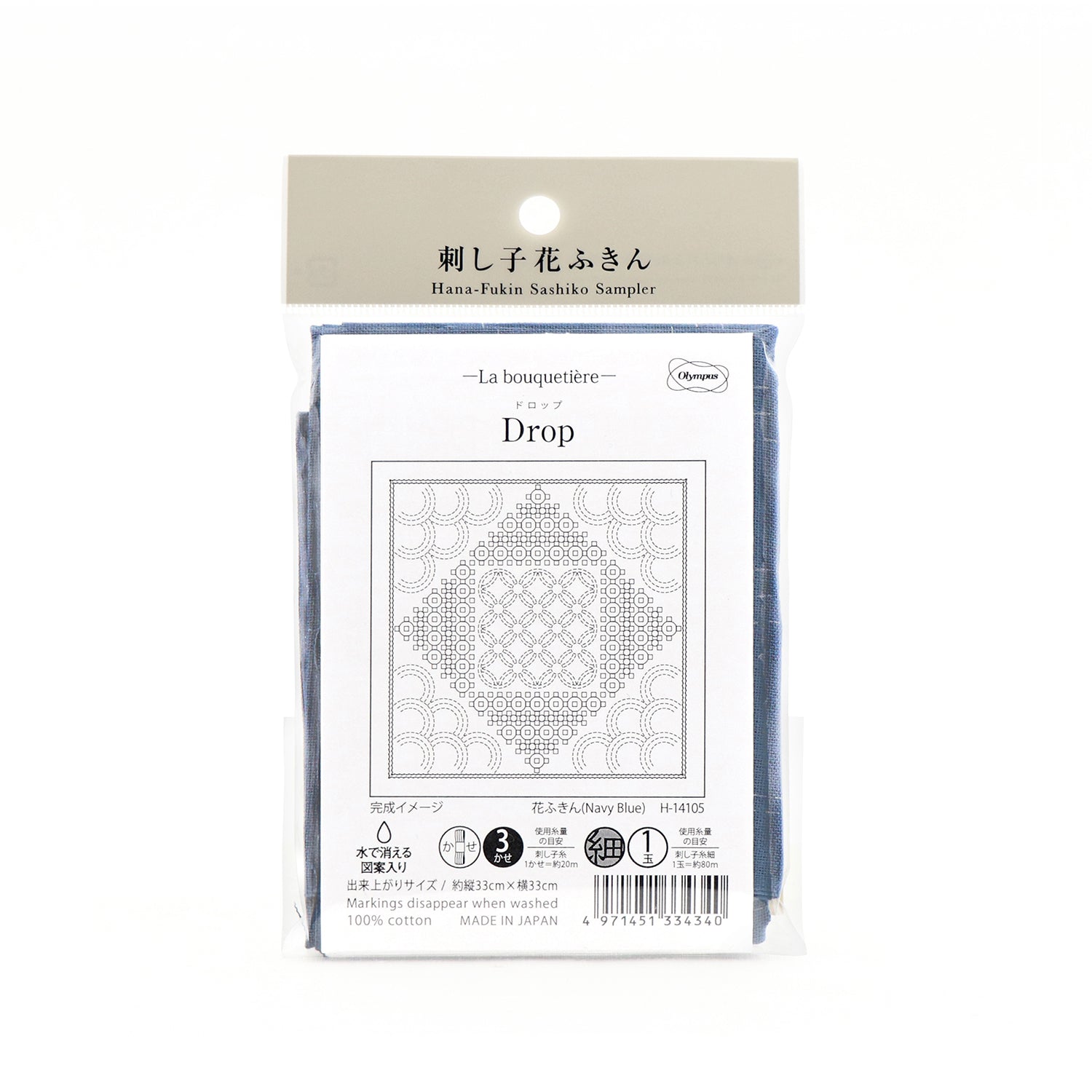 Olympus オリムパス 刺し子布パック 花ふきん La Bouquetiere Drop (Navy Blue) H-14105