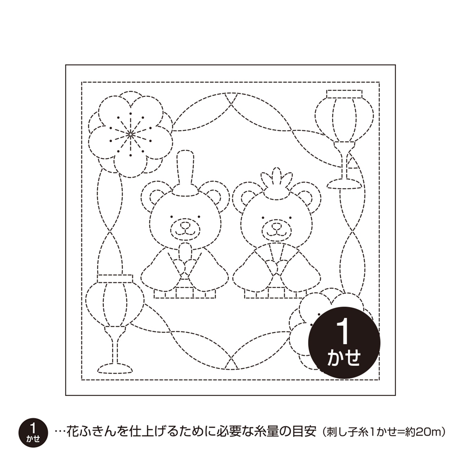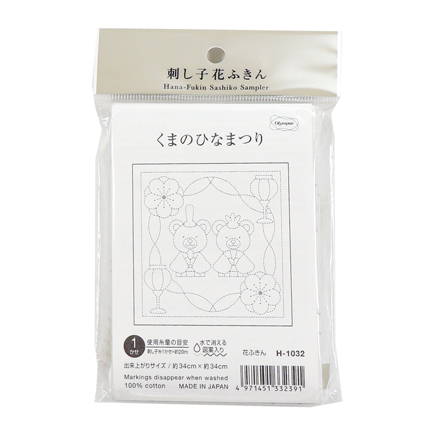 Olympus オリムパス 刺し子布パック 花ふきん (白) H-1032 くまのひなまつり