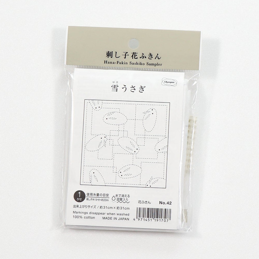 Olympus オリムパス 刺し子布パック 花ふきん (白) No.42 雪うさぎ