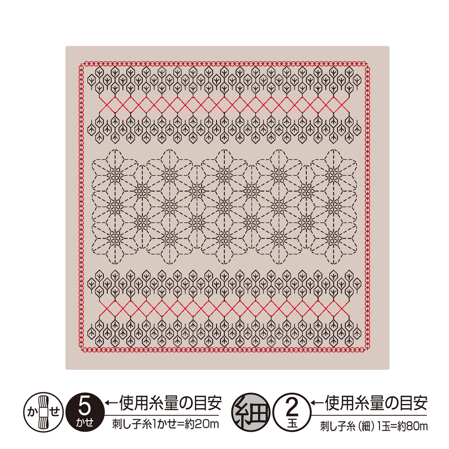 - セット内容:印刷済み刺し子もめん(綿100%・アーモンドミルク色)、作り方説明書