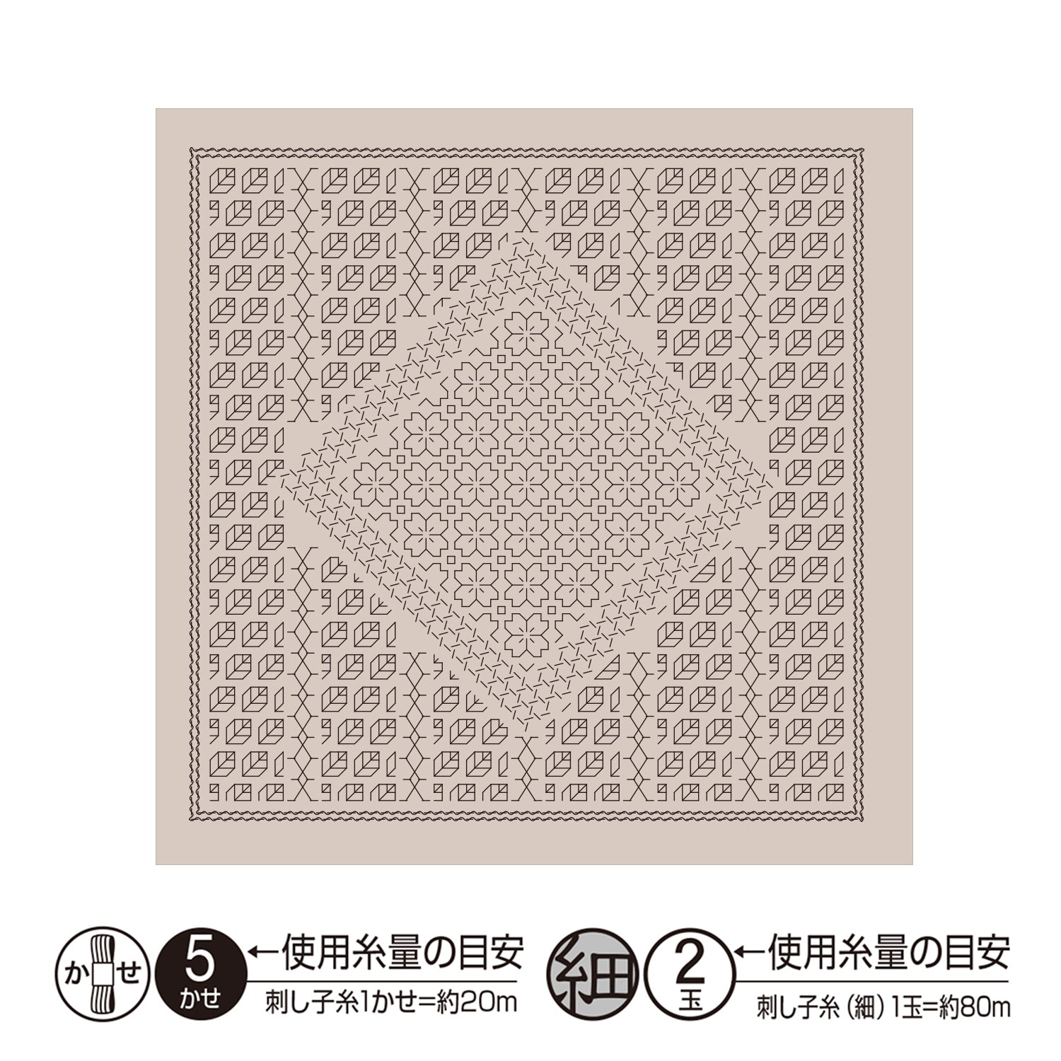 - セット内容:印刷済み刺し子もめん(綿100%・アーモンドミルク色)、作り方説明書
