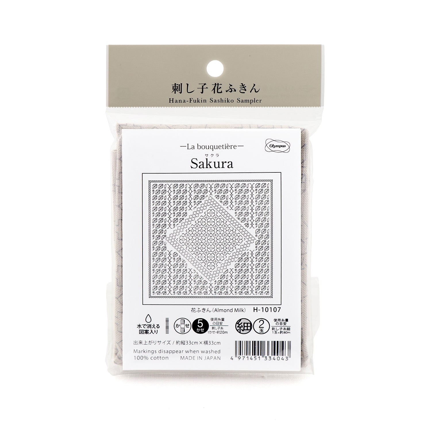 Olympus オリムパス 刺し子布パック 花ふきん La Bouquetiere Sakura (Almond Milk) H-10107