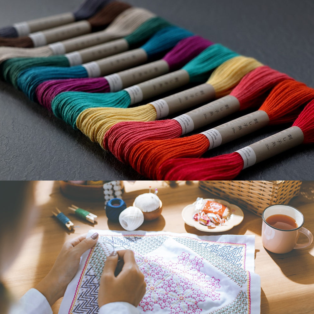 - 日本の老舗手芸メーカー「オリムパス製絲株式会社」が手がける刺し子糸と針を使用